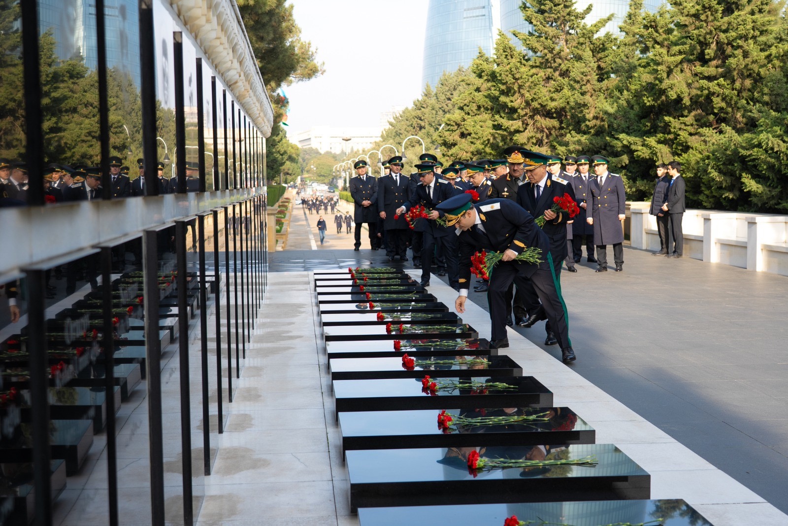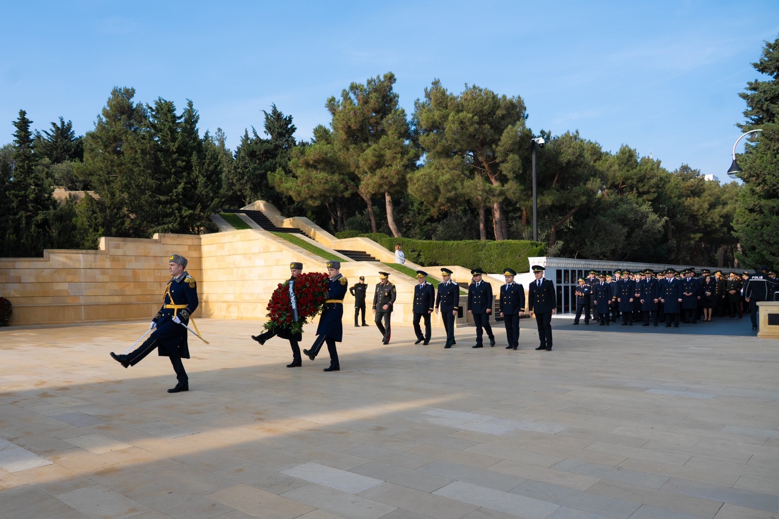 Mərasimdən öncə Fəxri xiyabanda Ümummilli Lider Heydər Əliyevin xatirəsi ehtiramla anılıb, məzarı önünə gül dəstələri qoyulub. Daha sonra Şəhidlər xiyabanında Azərbaycanın müstəqilliyi və ərazi bütövlüyü uğrunda canlarını fəda etmiş Vətən övladlarının xatirəsi yad edilib, məzarları önünə tər güllər düzülüb.