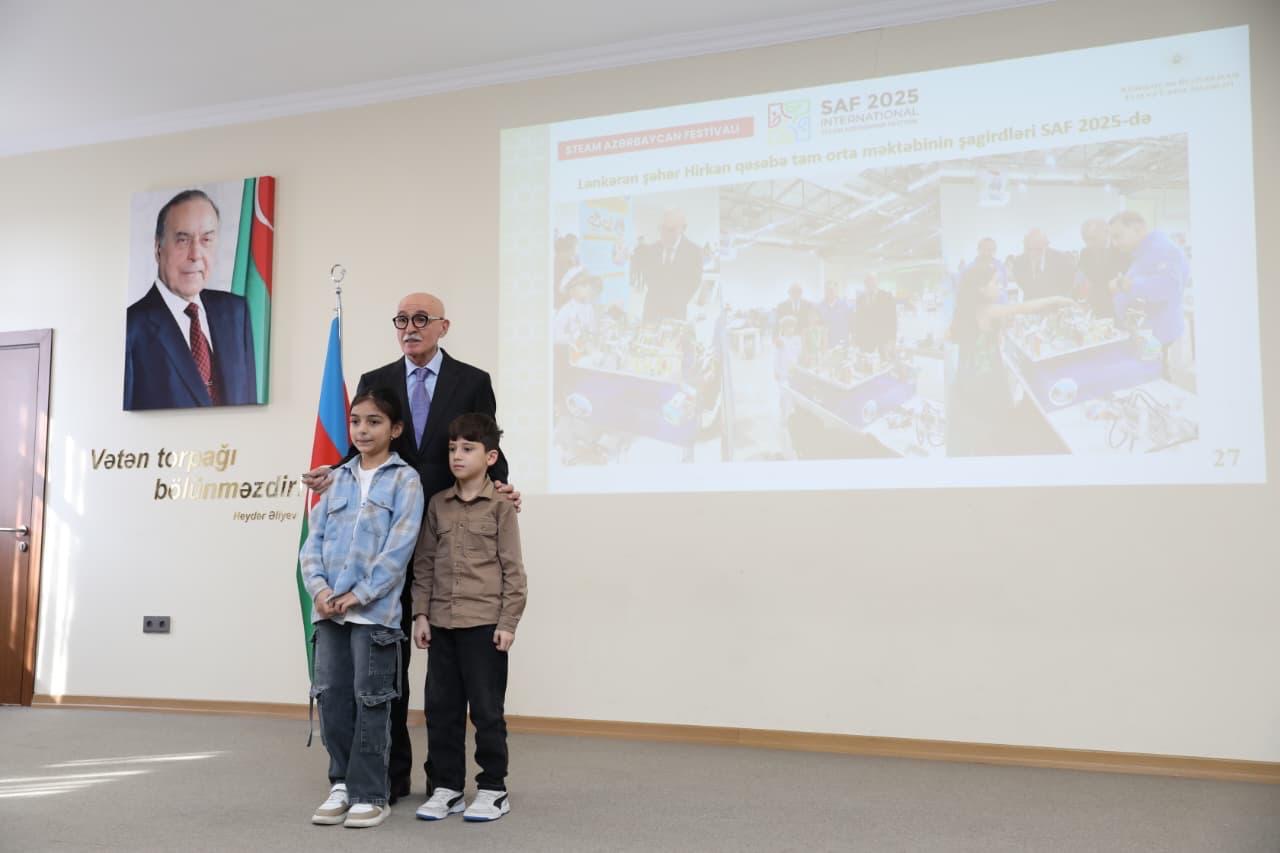 Görüş zamanı Firudin Qurbanov Lənkəran şəhər Hirkan qəsəbə tam orta ümumtəhsil məktəbinin SAF 2025 festivalında qalib olan şagirdlərini təbrik edib.
