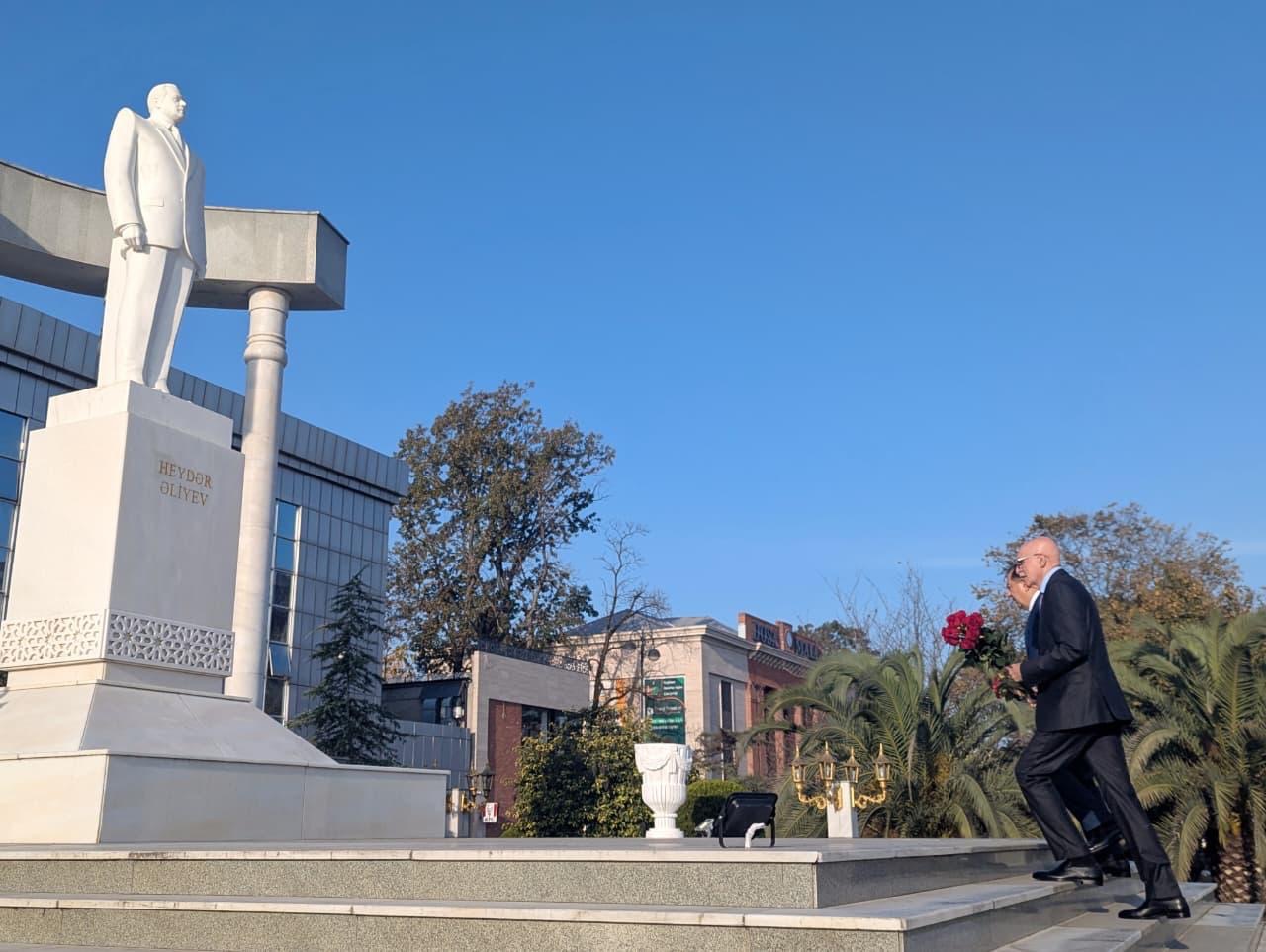 Səfərin əvvəlində nazir müavini Firudin Qurbanov Lənkəran Şəhər İcra Hakimiyyətinin başçısı Taleh Qaraşov ilə birlikdə ulu öndər Heydər Əliyevin abidəsini ziyarət edib, önünə gül dəstələri qoyub.