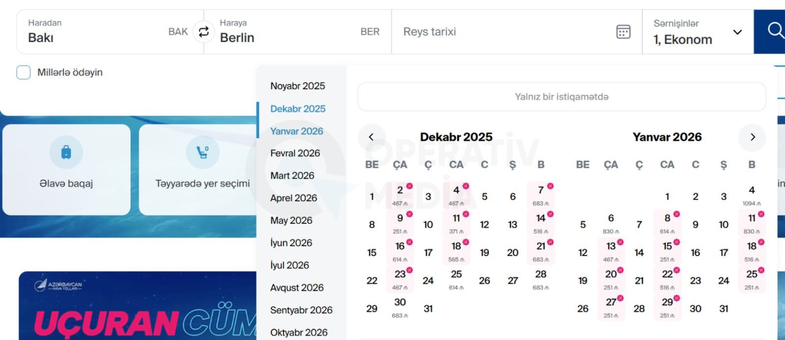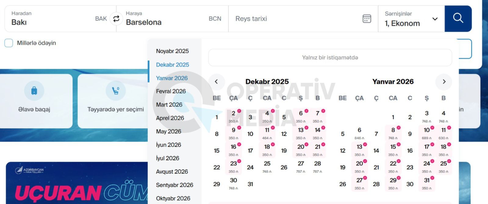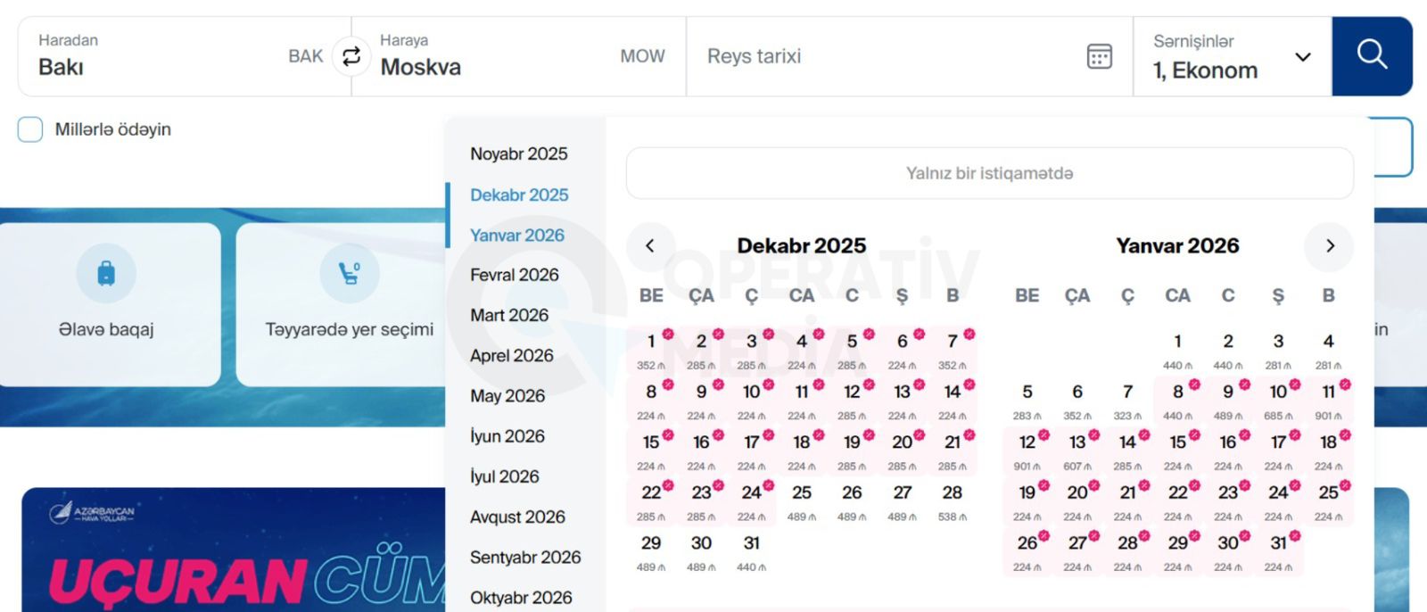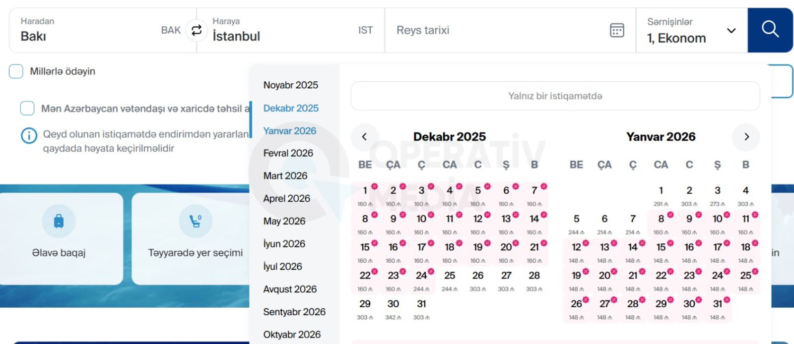 Qeyd edək ki, endirimli qiymətlər 1 dekabr 2025-dən 30 aprel 2026-dək həyata keçirilən uçuşlara aiddir.