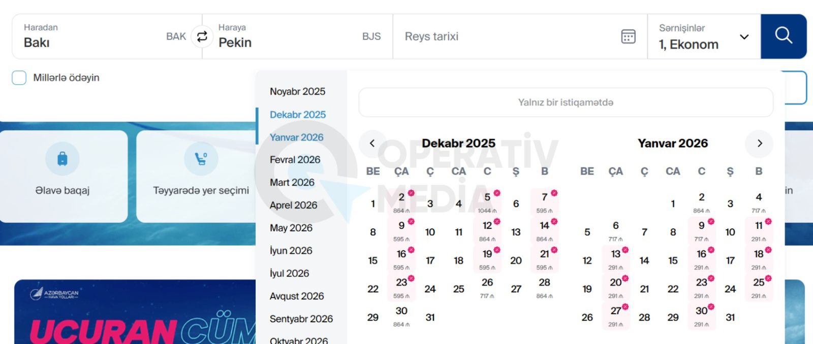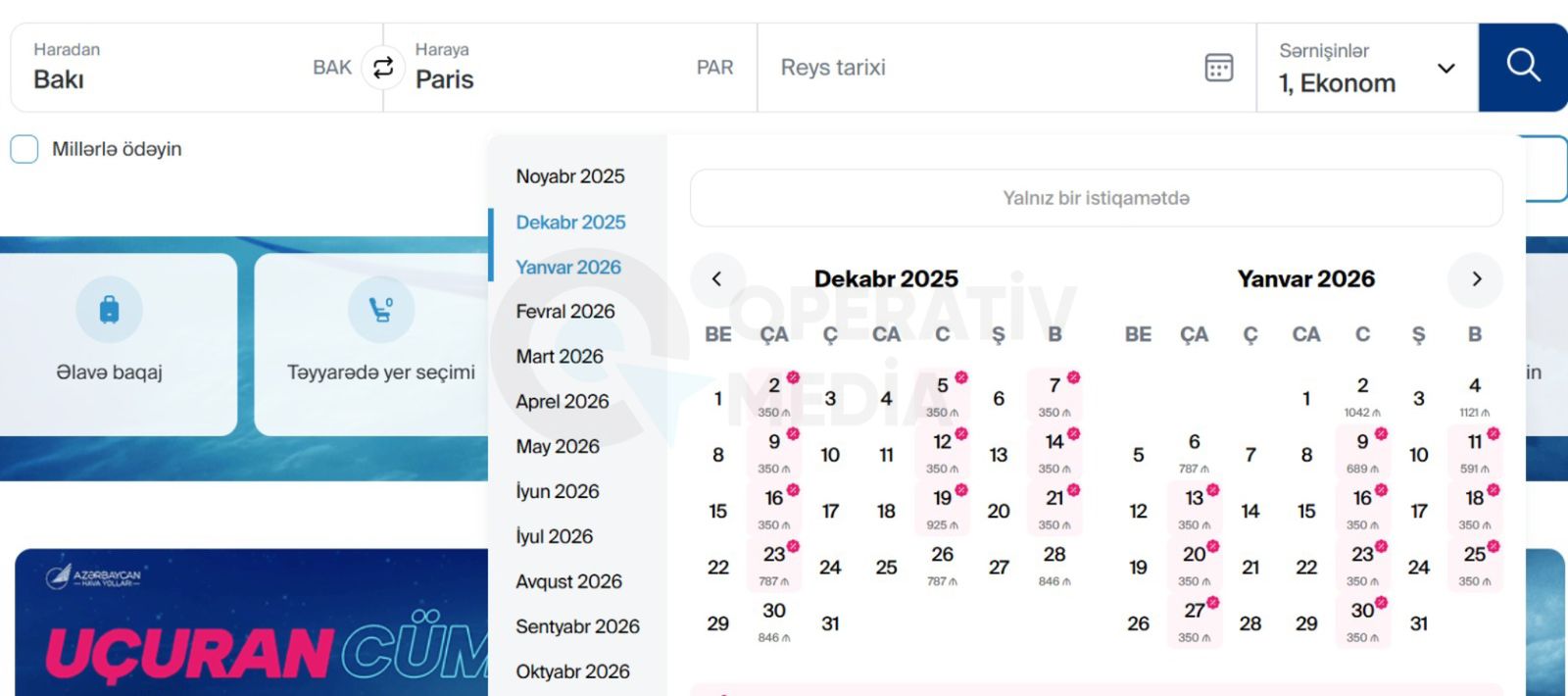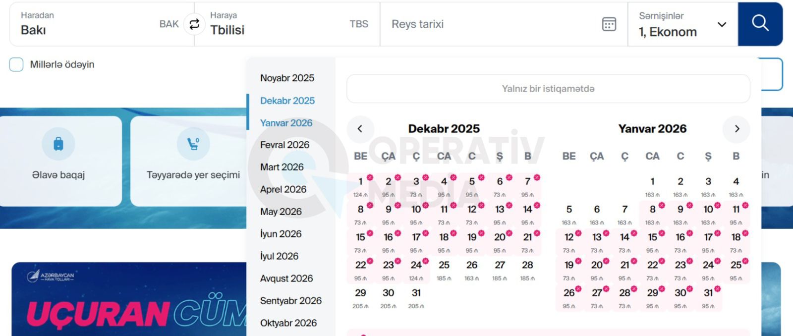 Qeyd edək ki, endirimli qiymətlər 1 dekabr 2025-dən 30 aprel 2026-dək həyata keçirilən uçuşlara aiddir.