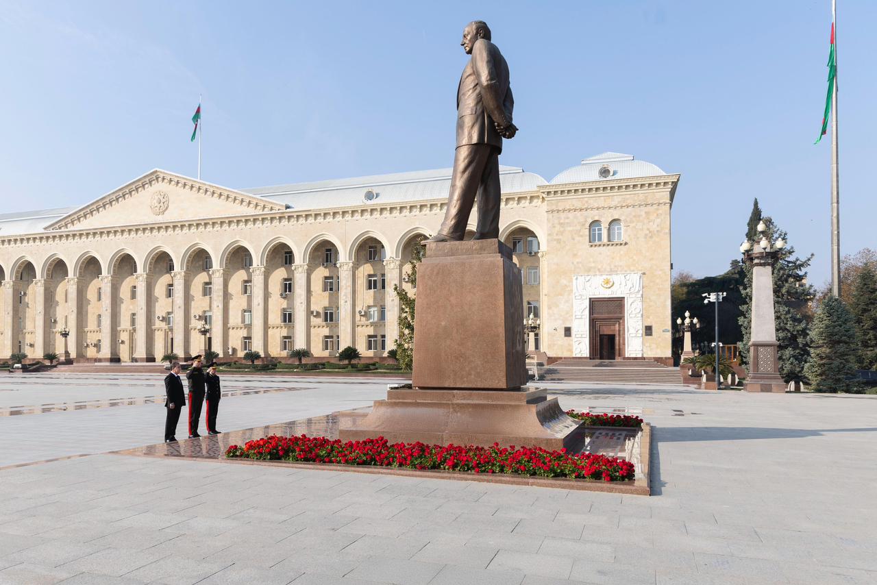 Nazir əvvəlcə Gəncə şəhərində ümummilli lider Heydər Əliyevin abidəsini ziyarət edərək əziz xatirəsini böyük hörmət və ehtiramla yad edib.