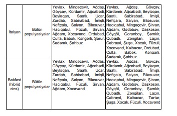 Qərara əsasən, bundan sonra bal arısı cinslərinin və populyasiyalarının rayonlaşdırılması aşağıdakı kimi olacaq.
