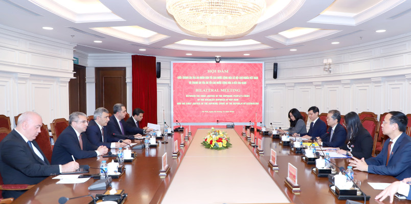Vyetnam Ali Xalq Məhkəməsinin dəvəti ilə baş tutan səfər çərçivəsində Vyetnam Ali Xalq Məhkəməsinin sədri Nguyen Van Quang ilə görüş keçirilib. O, qonaqları qəbul etməkdən məmnunluğunu ifadə edərək, bu səfərin iki ölkənin məhkəmələri arasında əməkdaşlığı yeni mərhələyə yüksəldəcəyinə əminliyini bildirib. Vyetnam və Azərbaycan arasında mövcud olan ənənəvi dostluq münasibətlərinin gələcək əməkdaşlıqlar üçün möhkəm bir baza olduğunu qeyd edən Nguyen Van Quang Vyetnam məhkəmə sistemində son dövrlərdə aparılan islahatlar, məhkəmələrin strukturlaşdırılması, elektron məhkəmə və insan resurslarının inkişafı barədə məlumat verib. Bildirilib ki, Azərbaycan məhkəmə sisteminin, xüsusilə Ali Məhkəmənin təcrübə və biliklərinin öyrənilməsi Vyetnam üçün son dərəcə önəmlidir.