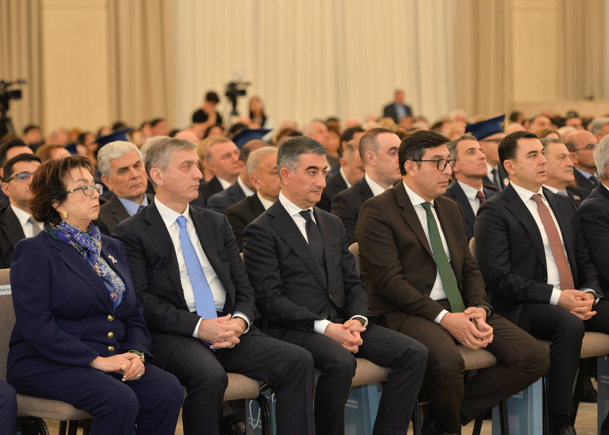 Rəsmi tədbirdən öncə Gülüstan Sarayında təşkil olunan “Təhsil və İrs” sərgisinə baxış keçirilib. Sərgidə universitetin zəngin tarixi irsi, keçdiyi inkişaf mərhələləri, elmi-pedaqoji nailiyyətləri və müasir inkişaf strategiyası təqdim olunub.