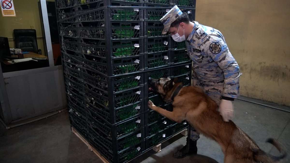 Stasionar rentgen qurğusunda baxış zamanı şübhəli cizgilər müşahidə edildiyindən yük avtomobilinə kinoloji xidmət itinin tətbiqi ilə gömrük yoxlaması həyata keçirilib.