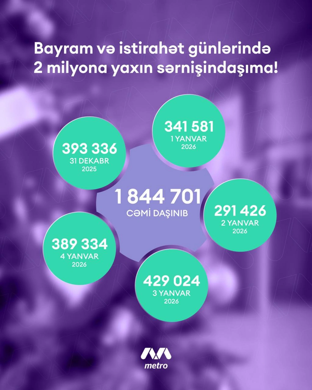 Bayram günlərində Bakı Metropoliteni 2 milyona yaxın sərnişin daşıyıb.