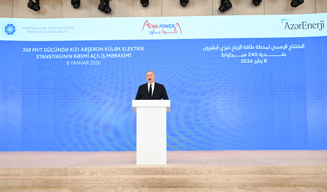 Sizin hamınızı ürəkdən salamlayıram. Bu gün ölkəmizin həyatında əlamətdar bir gündür. “Xızı-Abşeron” Külək Elektrik Stansiyasının istismara verilməsini qeyd edirik. Bu, çox önəmli hadisədir. Ölkəmizin enerji potensialını gücləndirəcək stansiya bu gün artıq fəaliyyətə başlayır. Əminəm ki, 240 meqavat gücündə stansiya ölkəmizin ümumi inkişafına öz töhfəsini verəcəkdir.