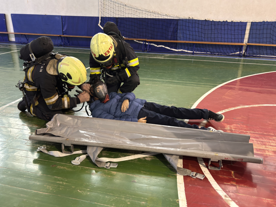 Təlimdə şərti yanğın zamanı “Həyəcan” siqnalı verildikdən sonra məktəbdə təxliyə planına uyğun olaraq şagird və müəllimlərin təhlükəsiz yerə təxliyəsi həyata keçirilib, yanğınsöndürənlər tərəfindən “yanğınla mübarizə” tədbirlərinə başlanılaraq çevik kəşfiyyatın aparılması, “yanğının söndürülməsi” və “xilasetmə” əməliyyatları yerinə yetirilib.