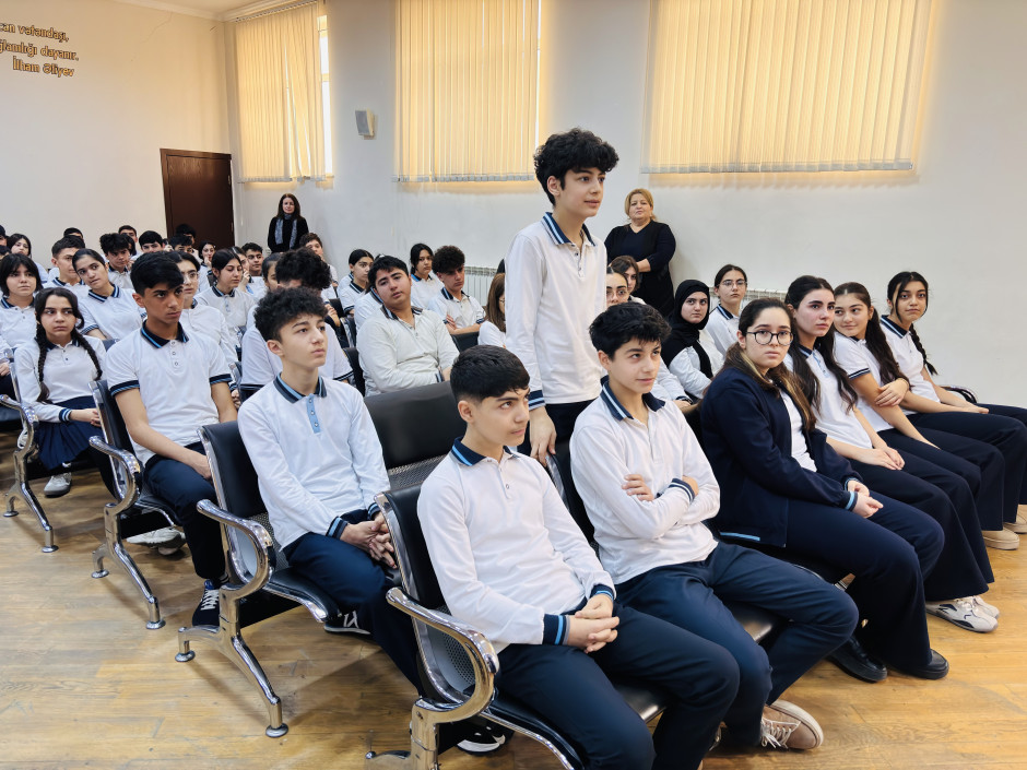 Əvvəlcə, təlimin nəzəri hissəsi çərçivəsində FHN-in əməkdaşları tərəfindən məktəbin kollektivinə fövqəladə hallar, o cümlədən yanğınlar zamanı zəruri davranış qaydaları, təxliyə tədbirləri barədə ətraflı məlumat verilib, bu barədə videoçarxlar nümayiş olunub, ilkin yanğınsöndürmə vasitələrindən istifadə qaydaları əyani şəkildə göstərilib, suallar cavablandırılıb.
