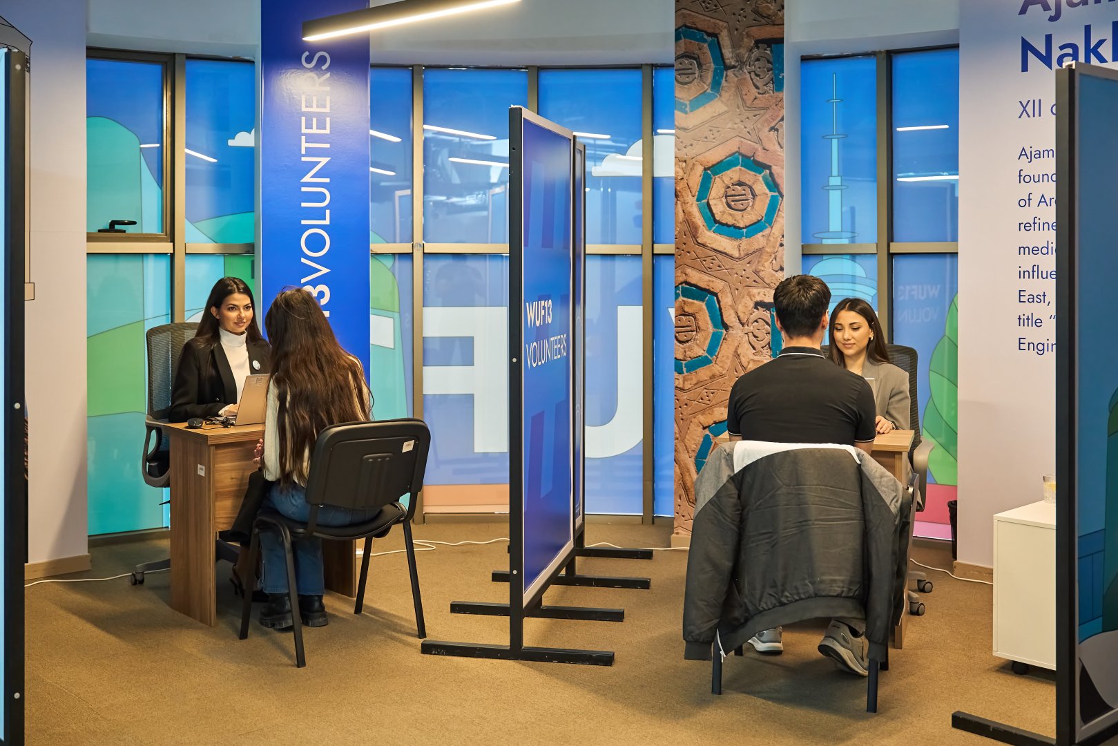 WUF13 könüllüləri Forum müddətində qonaqların qarşılanması və qeydiyyat prosesinə dəstək göstərilməsi, informasiya xidmətlərinin təşkili, sessiya və sərgi məkanlarında təşkilati işlərə yardım, mədəni proqramların koordinasiyası və digər mühüm istiqamətlər üzrə cəlb olunacaqlar.