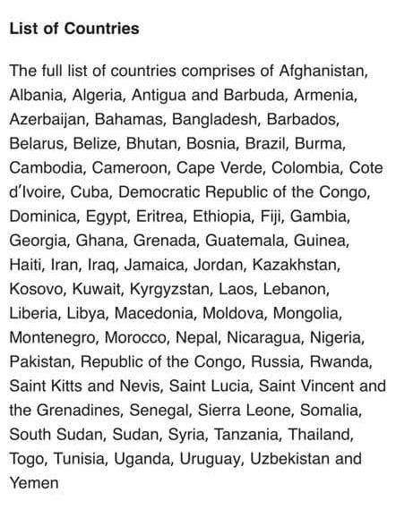 Operativ Media xəbər verir ki, həmin ölkələrin siyahısına Somali, Rusiya, İran, İraq, Əfqanıstan, Braziliya, Nigeriya, Tayland, Yəmən və digərləri daxildir.