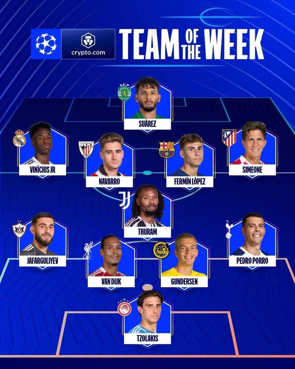UEFA Çempionlar Liqasında həftənin rəmzi komandası açıqlanıb.