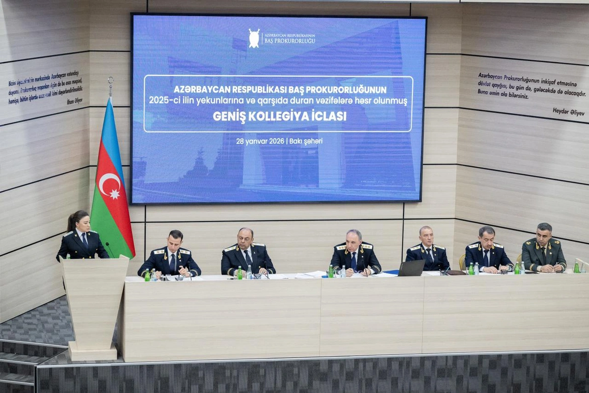 Baş Prokurorluqda 2025-ci ildə qanunla prokurorluq orqanlarının səlahiyyətinə aid bütün fəaliyyət istiqamətləri üzrə görülmüş işlərin vəziyyəti və qarşıda duran vəzifələrin müzakirəsinə həsr olunmuş kollegiya iclası keçirilib.