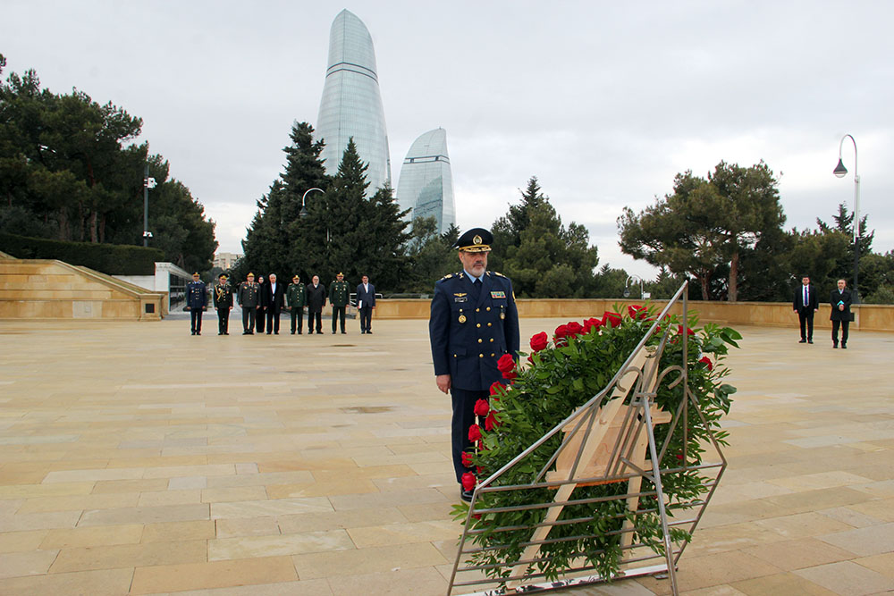 Müdafiə Nazirliyindən Operativ Media-ya verilən məlumata görə, əvvəlcə qonaqlar Şəhidlər xiyabanında ölkəmizin müstəqilliyi, ərazi bütövlüyü və suverenliyi uğrunda şəhid olmuş vətəndaşlarımızın məzarlarını ziyarət edərək xatirələrinə ehtiram nümayiş etdiriblər. “Əbədi məşəl” abidəsinin önünə əklil qoyulub.