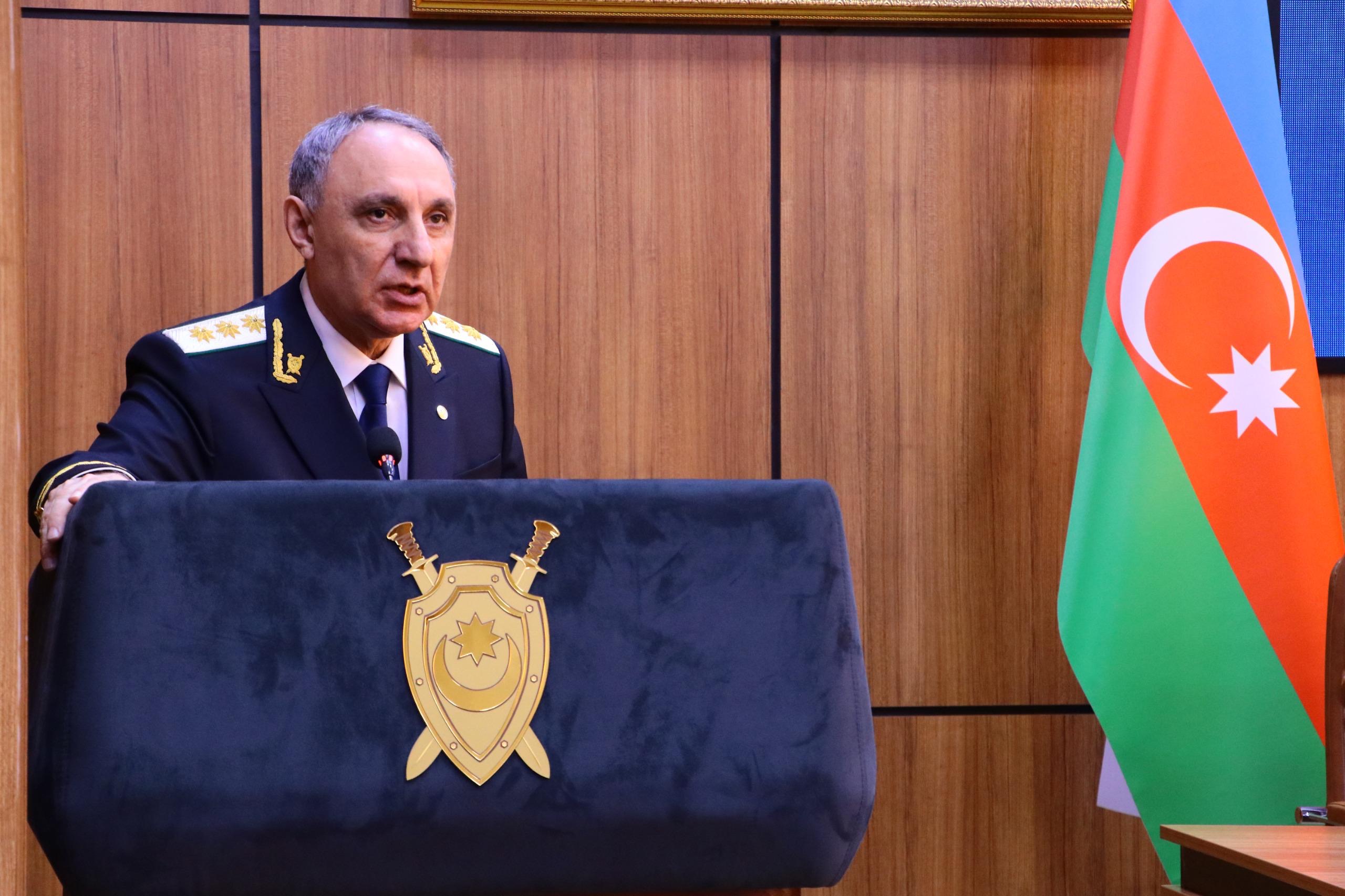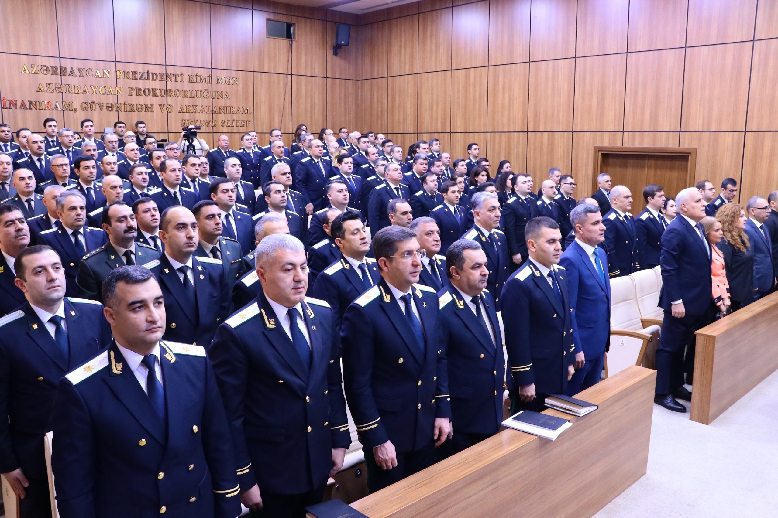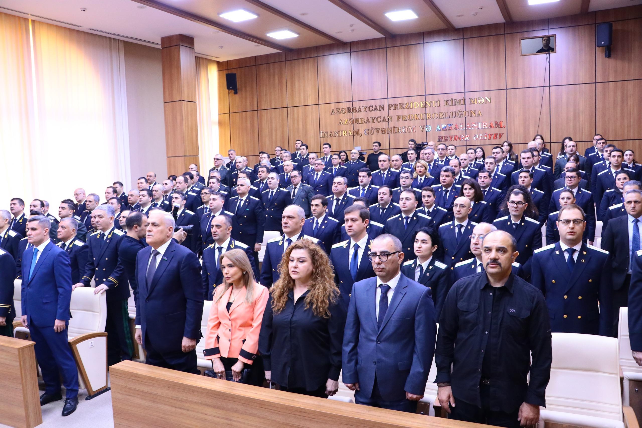 Tədbirdə çıxış edən Baş prokuror Kamran Əliyev tərəfindən geridə qalan 2025-ci ilin ölkəmiz üçün uğurlu olmaqla yanaşı, çoxsaylı əlamətdar hadisələrlə yadda qalması qeyd edilib, Ümummilli lider Heydər Əliyevin əsasını qoyduğu praqmatik siyasi kursun möhtərəm Prezidentimiz cənab İlham Əliyev tərəfindən müdrik şəkildə davam etdirilməsi nəticəsində ölkəmizin sürətli hərtərəfli inkişafının davam etməsi, suverenliyimizin və ərazi bütövlüyümüzün beynəlxalq aləmdə təsdiq olunması, avqustun 8-də Amerika Birləşmiş Ştatlarının paytaxtı Vaşinqton şəhərində Ermənistan Respublikası ilə sülh müqaviləsinin paraflanması qeyd olunub.