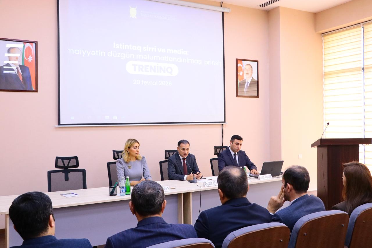 Prokurorluq orqanları ilə media və qeyri-hökumət təşkilatları arasında işgüzar əlaqələrin möhkəmləndirilməsi, fəaliyyət istiqamətləri üzrə keyfiyyət və səmərəliliyin daha da artırılması, məlumat mübadiləsi zamanı mövcud qanunvericiliyin tələblərinə əməl olunması, eləcə də istintaq sirri təşkil edə biləcək məlumatların ictimailəşdirilməsinin qarşısının alınması məqsədilə cari ilin fevral ayının 20-də jurnalistlər üçün “İstintaq sirri və media: ictimaiyyətin düzgün məlumatlandırılması prinsipləri” mövzusunda treninq təşkil olunub.