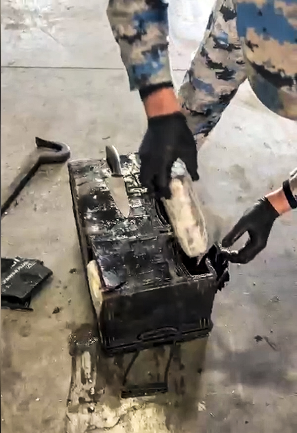 Yoxlama zamanı akkumulyatorun içərisinə malların aşkarlanmasını çətinləşdirən üsulla yerləşdirilmiş 6 ədəd sellofan paketdə ümumilikdə təmiz çəkisi 5 kiloqram 254,397 qram olan xüsusilə külli miqdarda psixotrop maddə - metamfetamin aşkar edilib.