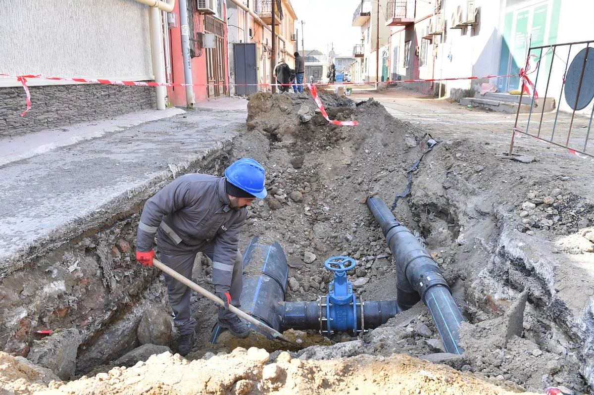 Xidmətin müvafiq strukturları 500 millimetrlik çuğun xəttin 100 metrlik hissəsini polietilen boru ilə əvəzləyərək yerini dəyişdirib. Həmin xətdən qidalanan abonentlərin su təminatı bərpa edilib. Qəzalı vəziyyətdə olan evin altında qalan 100 və 150 millimetrlik köhnə polad borular da ləğv edilərək diametri 110 və 160 millimetrlik yeni polietilen borularla əvəz olunur. Hazırda quraşdırma işləri davam etdirilir.