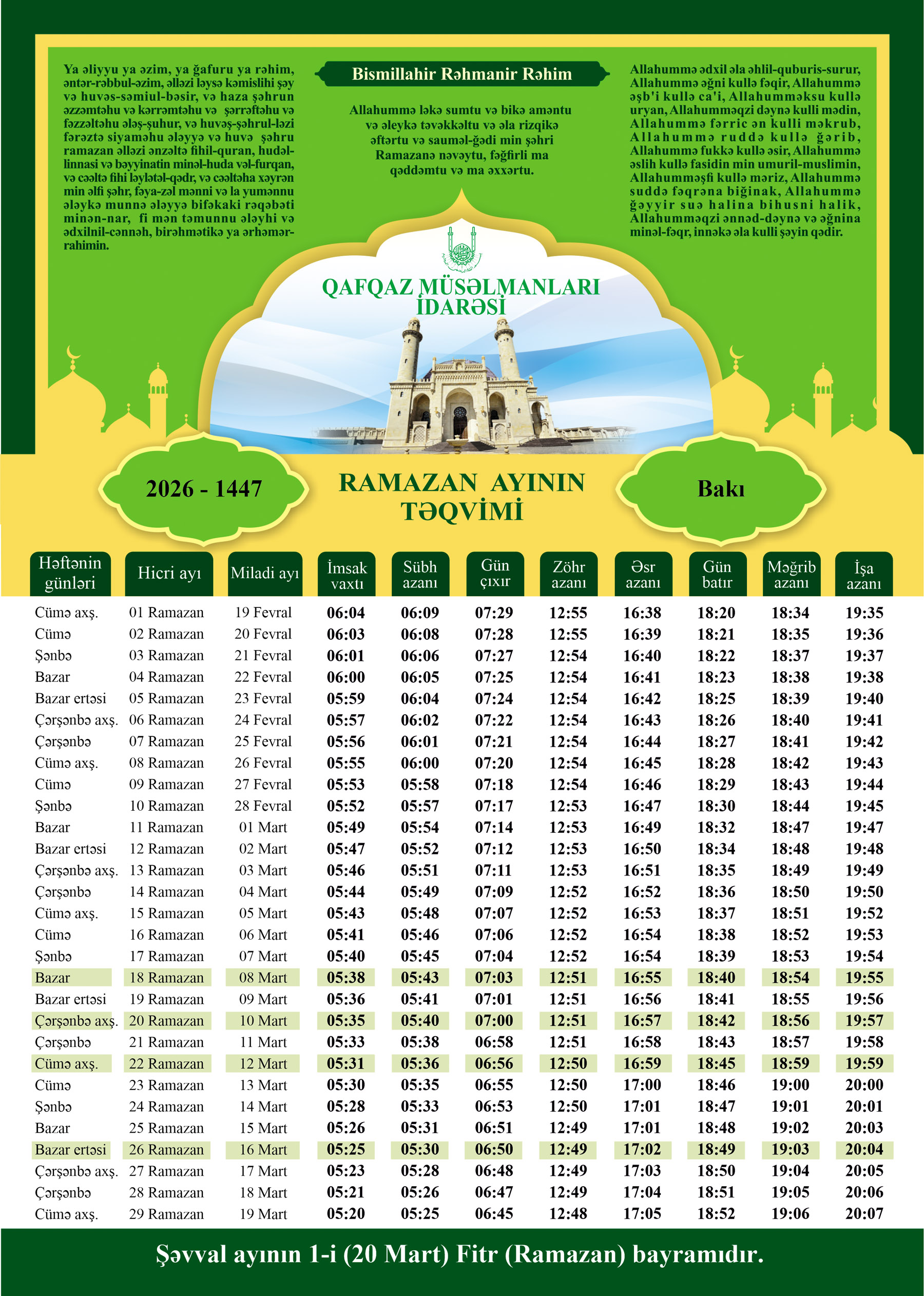 Operativ Media xəbər verir ki, Ramazan ayı martın 19-da başa çatacaq.