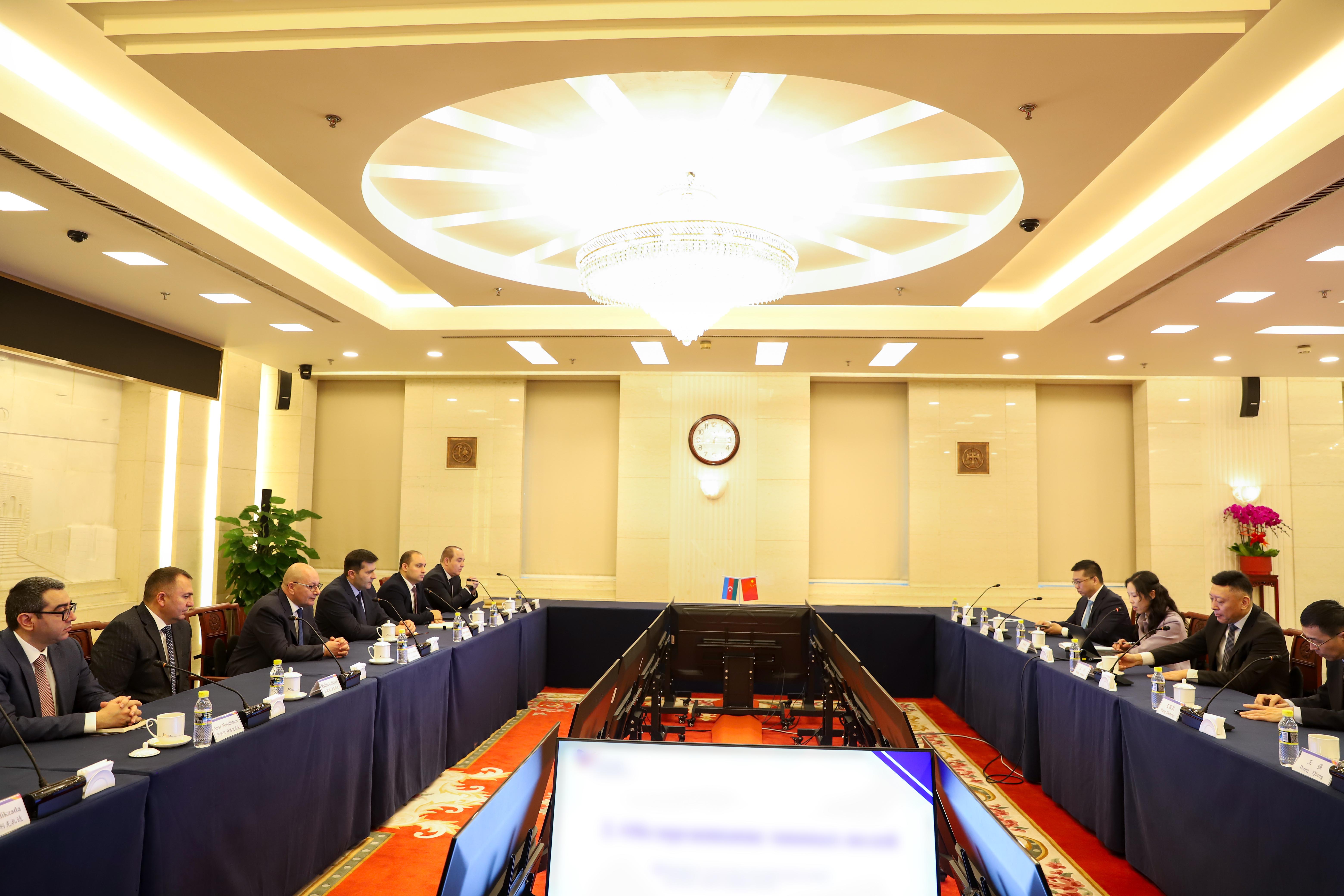 Səfər çərçivəsində ilk görüş Çin Xarici İşlər Nazirliyinin (XİN) Silahlara Nəzarət Departamentinin baş direktoru Sun Xiaobo ilə baş tutub. Görüşdə ölkəmizin Çin Xalq Respublikasındakı fövqəladə və səlahiyyətli səfiri Bünyad Hüseynov da iştirak edib.