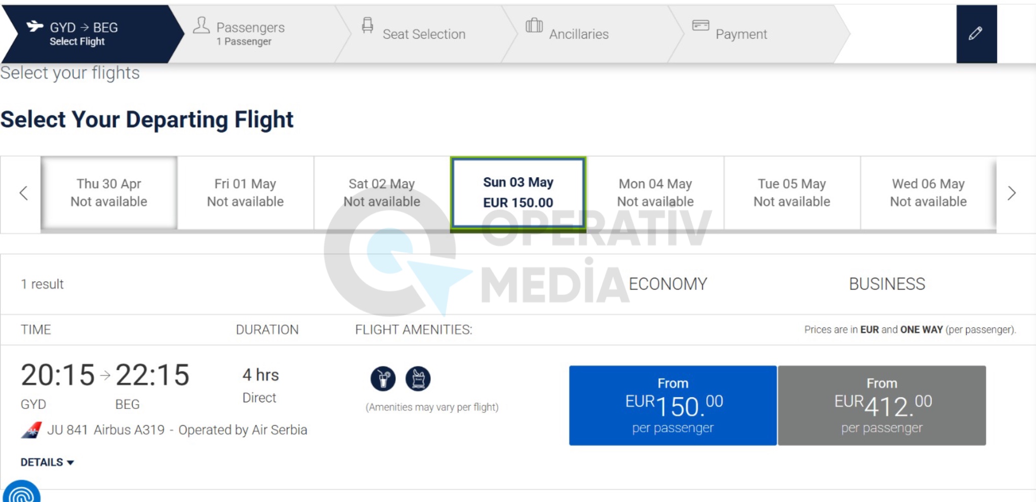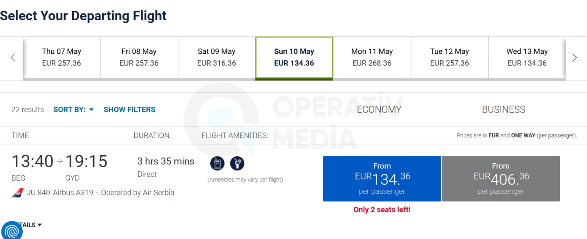 Ana səhifə / Dünya / "Air Serbia” Belqrad–Bakı arasında birbaşa uçuşlara başlayır - BİLET QİYMƏTLƏRİ "Air Serbia” Belqrad–Bakı arasında birbaşa uçuşlara başlayır - BİLET QİYMƏTLƏRİ 16.03.2026, 12:50 Operativ Media Serbiyanın “Air Serbia” aviaşirkəti Belqrad–Bakı arasında birbaşa uçuşlara başlayır.Operativ Media-nın xəbərinə görə, aviaşirkət mayın 3-dən etibarən Belqrad və Bakı arasında birbaşa uçuşlar həyata keçirəcək.Bilet qiymətləri Bakıdan Belqrada 150 avro, Belqraddan Bakıya isə 134 avro təşkil edir. Qeyd edək ki, uçuş müddəti təxminən 3 saat 35 dəqiqədir.
