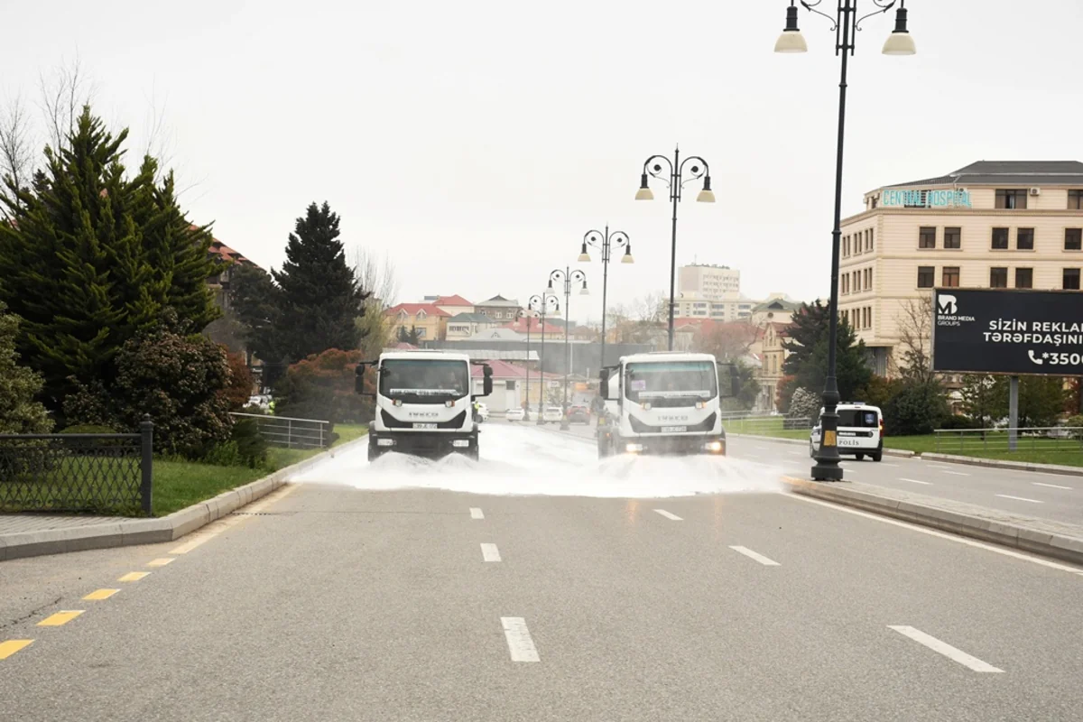 Bakı Şəhər İcra Hakimiyyətinin Mətbuat Xidmətindən Operativ Media-ya verilən məlumata görə, səhər saatlarından Kommunal təsərrüfat xidmətlərinin texnikası bitki və canlılara zərər verməyən yuyucu maddələrlə əsas küçə və prospektlərin yuyulmasını aparıb. Bu zaman həm də məhəllədaxili və ara yollar da yuyulub.
