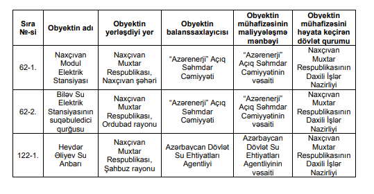 Ana səhifə / Cəmiyyət / Mühafizə olunmalı həyat təminatlı, mühüm əhəmiyyətli obyektlərin siyahısında dəyişiklik edilib Mühafizə olunmalı həyat təminatlı, mühüm əhəmiyyətli obyektlərin siyahısında dəyişiklik edilib 24.02.2026, 17:06 Operativ Media Azərbaycan Respublikasında mühafizə olunmalı həyat təminatlı, mühüm əhəmiyyətli obyektlərin Siyahısında dəyişiklik edilib. Operativ Media xəbər verir ki, bununla bağlı Baş nazir Əli Əsədov qərar imzalayıb.Qərarla mühüm əhəmiyyətli obyektlərin siyahısı genişlənib: