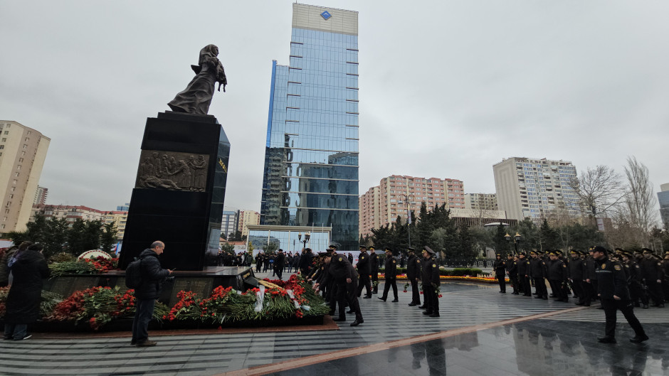 Abidənin önünə gül dəstələri düzülüb, Xocalı soyqırımı qurbanlarının əziz xatirəsi dərin ehtiramla yad edilib.