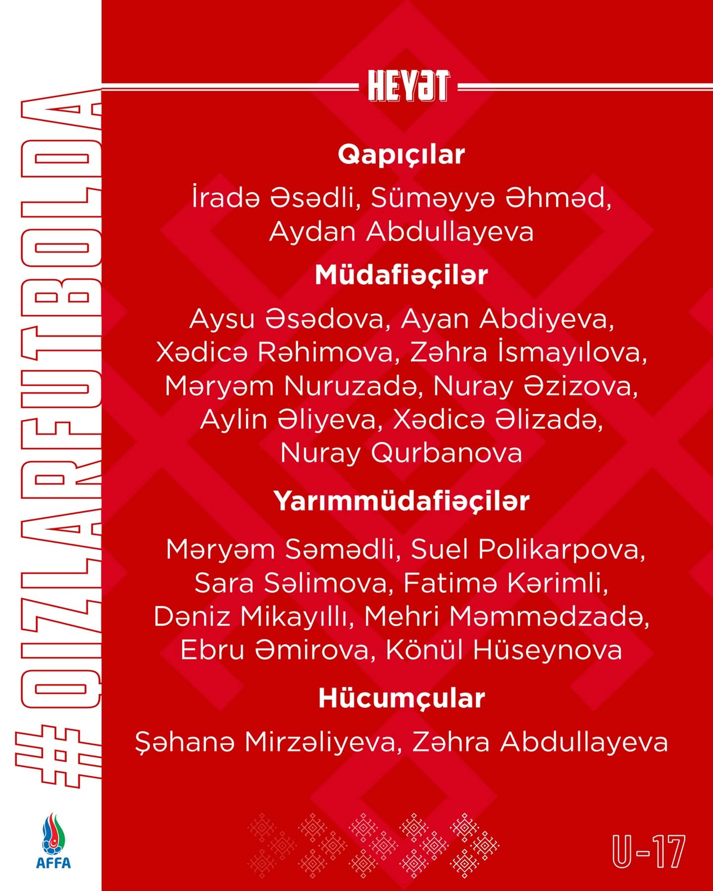 Azərbaycanın U-17 millisinin təlim-məşq toplanışı üçün heyəti açıqlandı