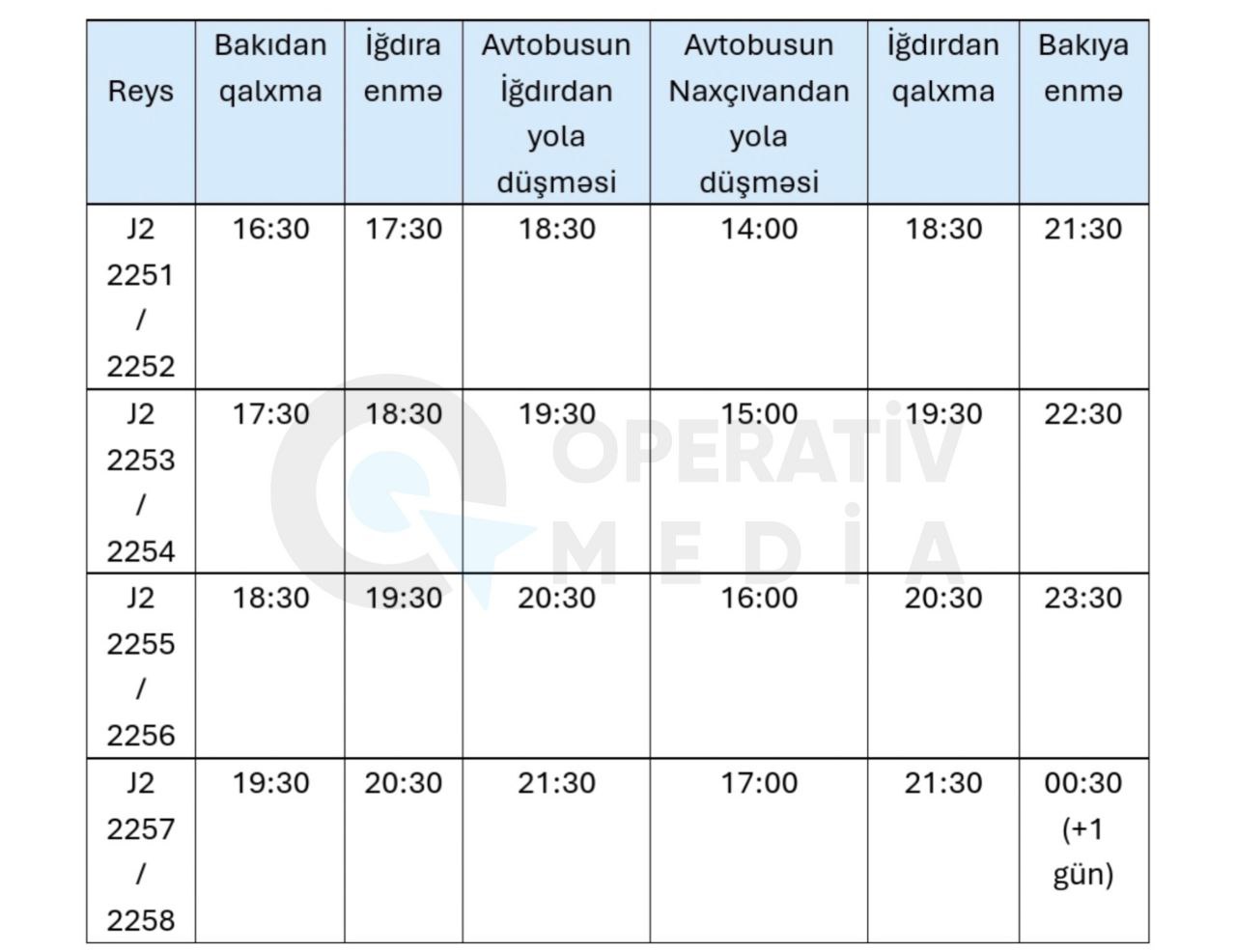 Qeyd olunub ki, mövcud vəziyyət nəzərə alınaraq Azərbaycan vətəndaşlarının Bakı ilə Naxçıvan arasında alternativ nəqliyyat əlaqəsindən istifadə edə bilmələri üçün AZAL-ın Bakı-İğdır-Bakı marşrutu üzrə növbəti uçuş cədvəli hazırlanıb.