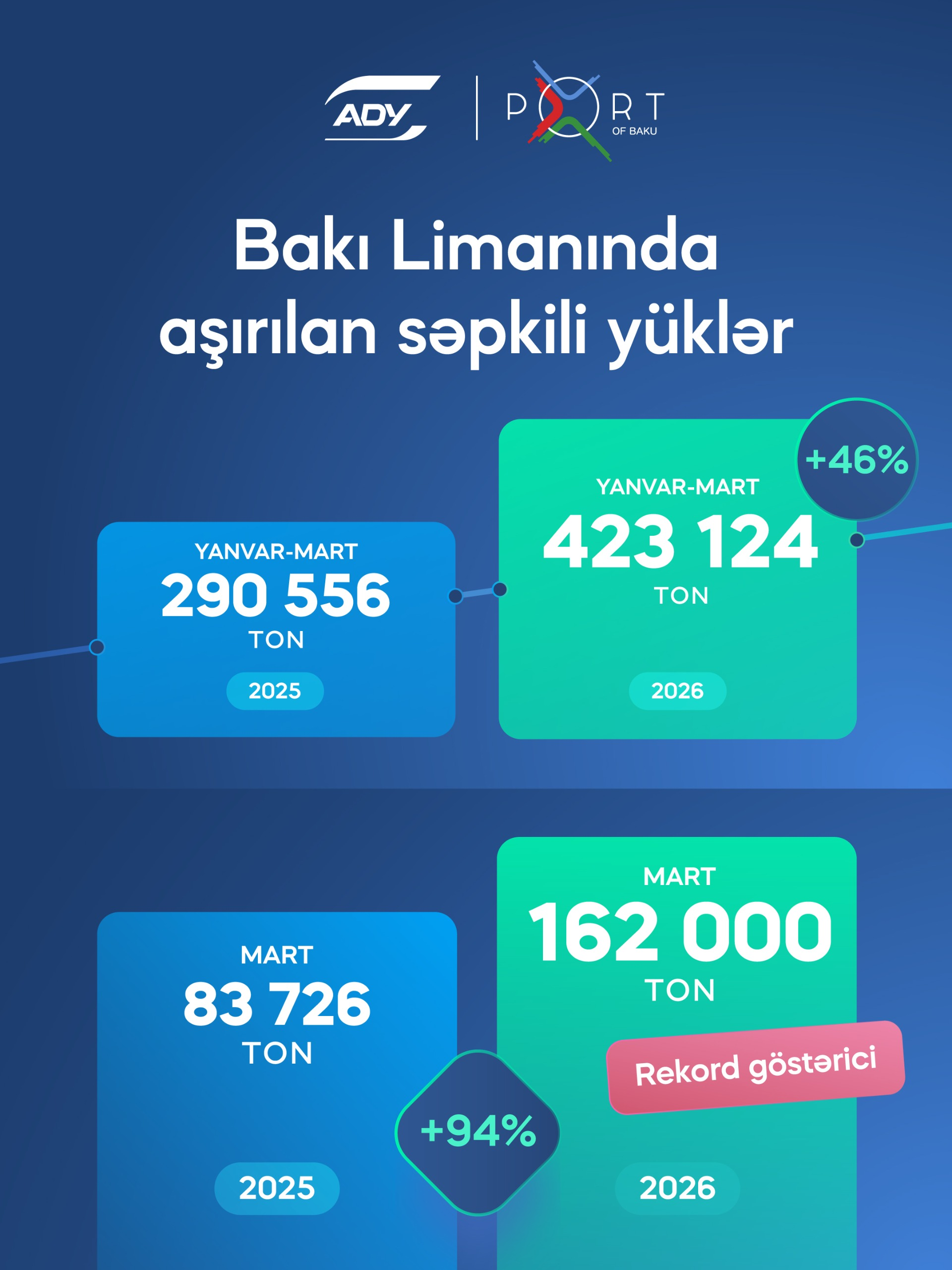 Bundan başqa, martda Bakı Limanının Ümumi yüklər terminalında 78 gəmi yanaşmaşı olub ki, bu da öz növbəsində rekord göstəricidir.