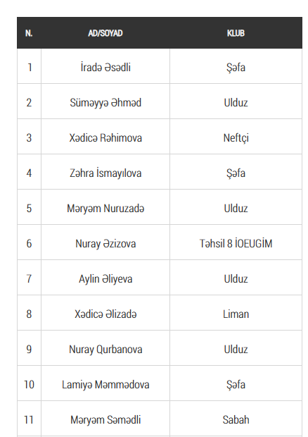 16 yaşadək qızlardan ibarət Azərbaycan milli komandası aprelin 30-da Bakıda təlim-məşq toplanışına başlayacaq.